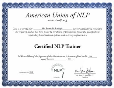 Accredited by IGH3P • Certified NLP Trainer • American & German Board-Certified